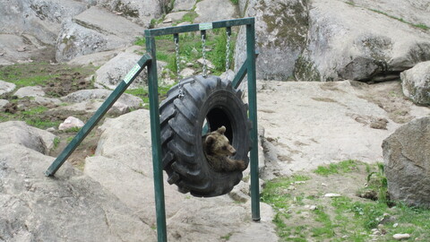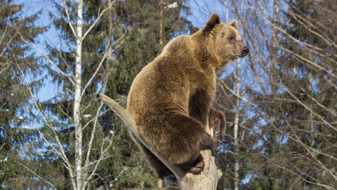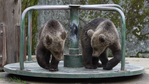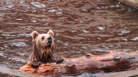 Karhut tulevat keväällä talvipesästä ulos. Ähtärin eläinpuistossa