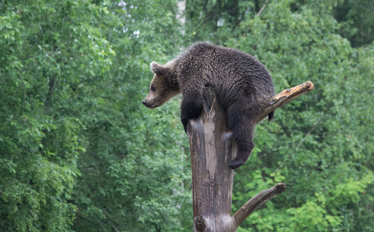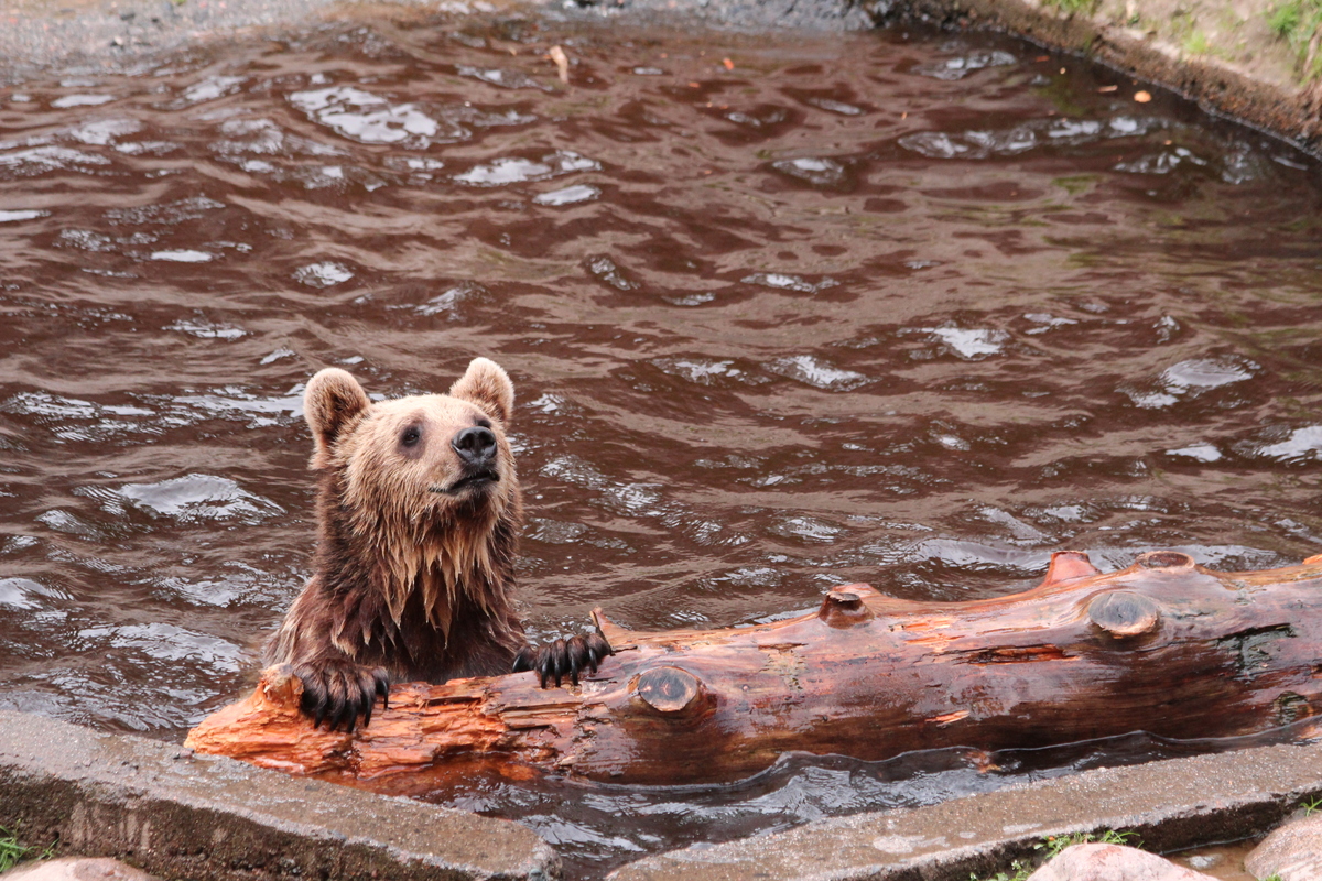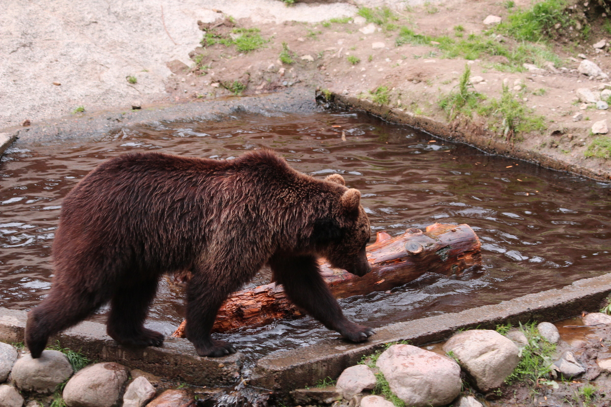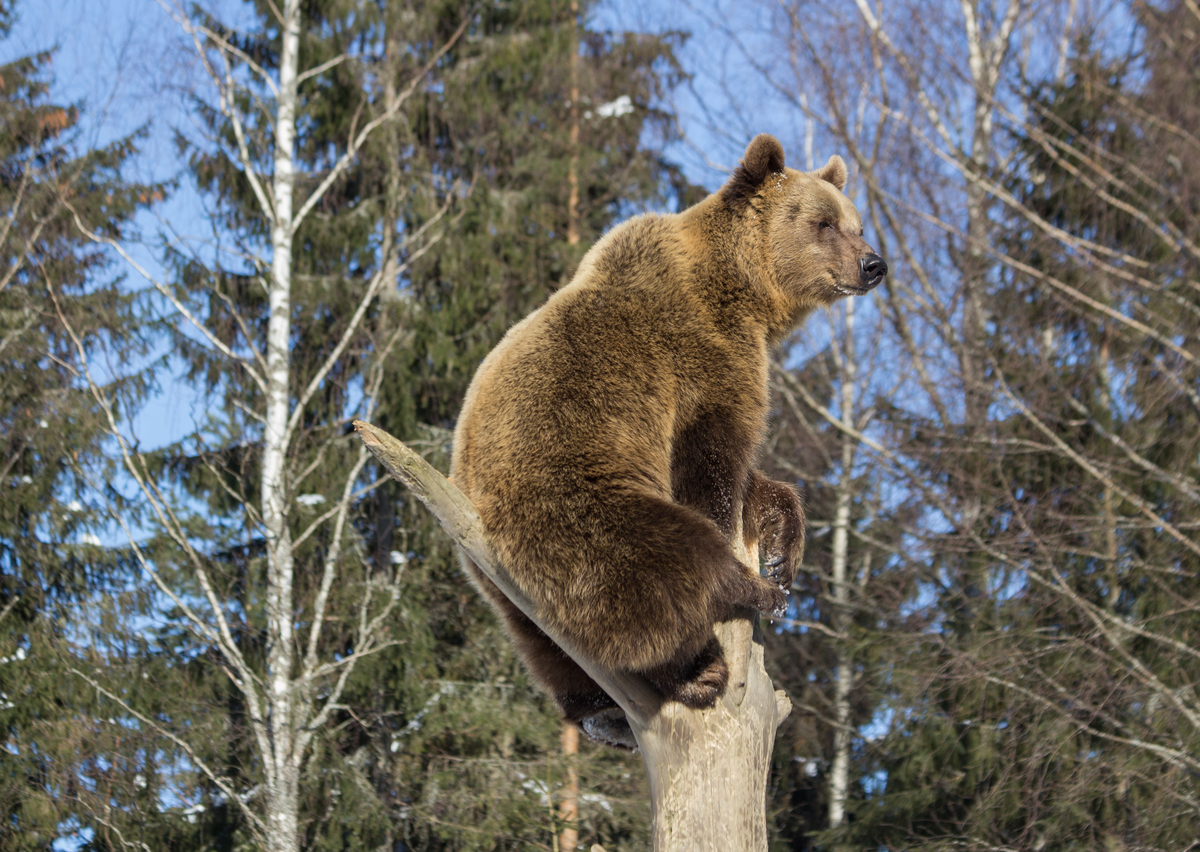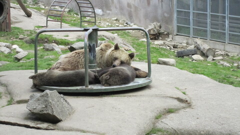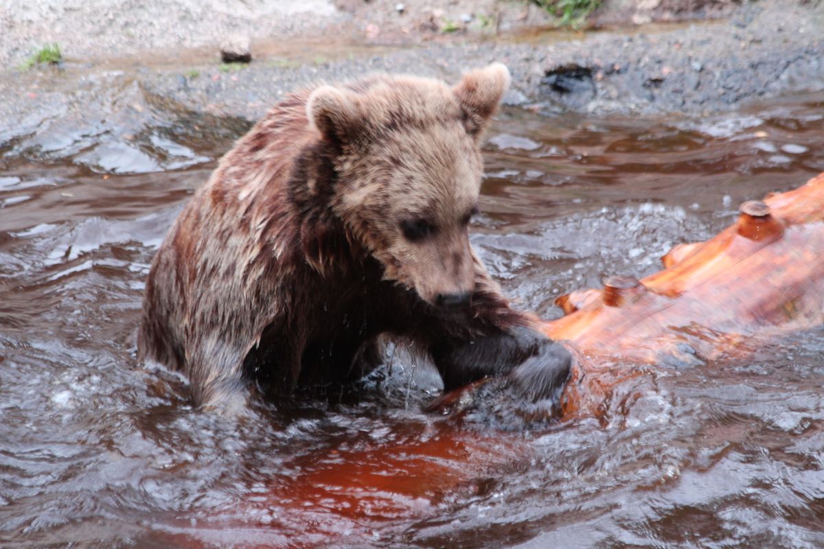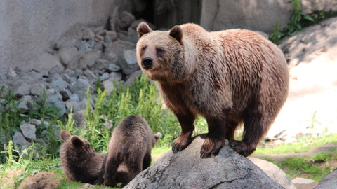 Karhut tulevat keväällä talvipesästä ulos. Ähtärin eläinpuistossa
