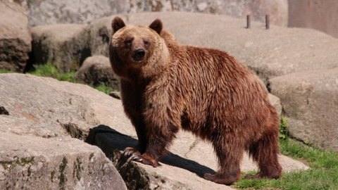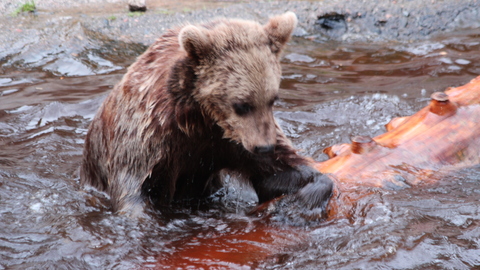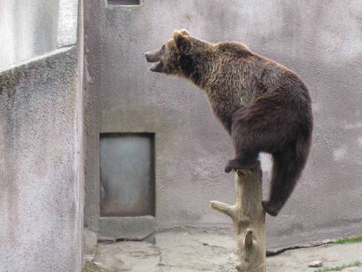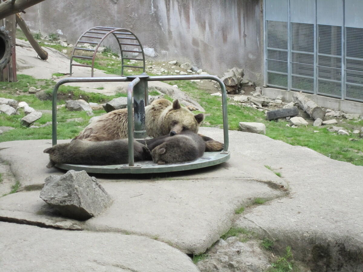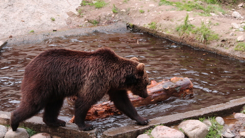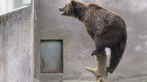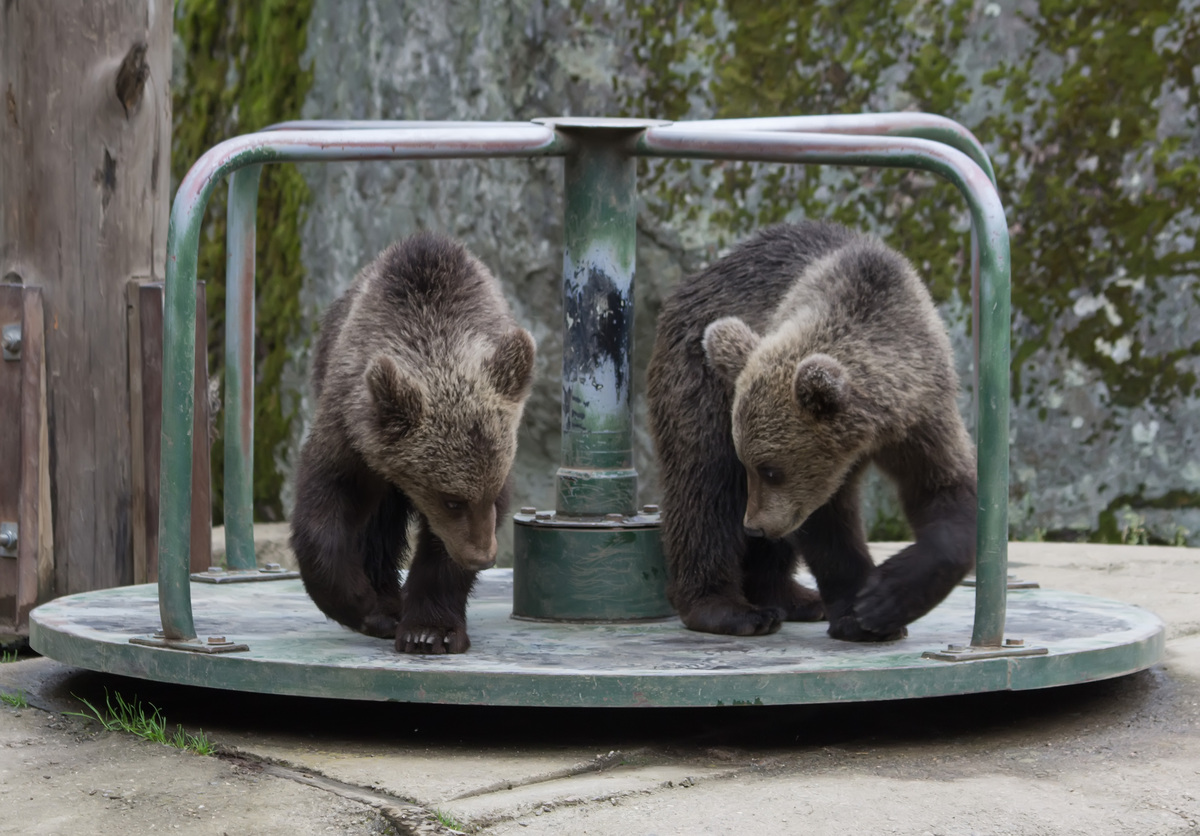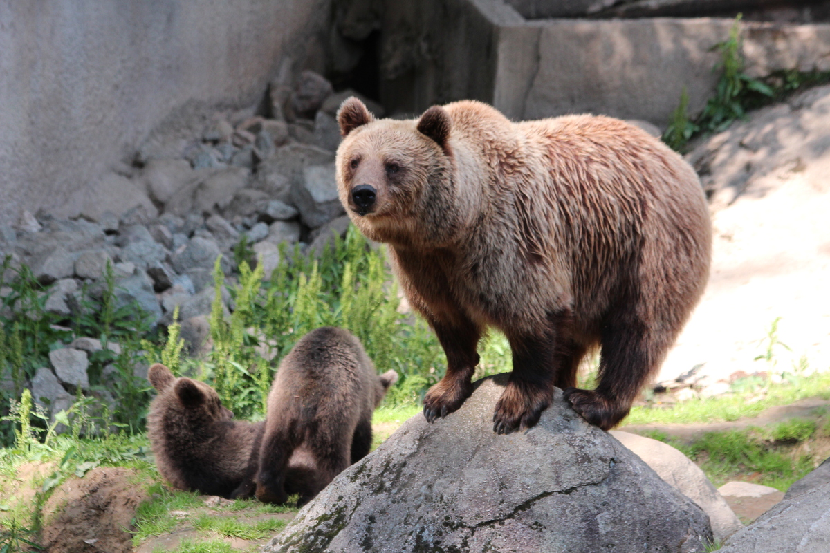 Karhut tulevat keväällä talvipesästä ulos. Ähtärin eläinpuistossa